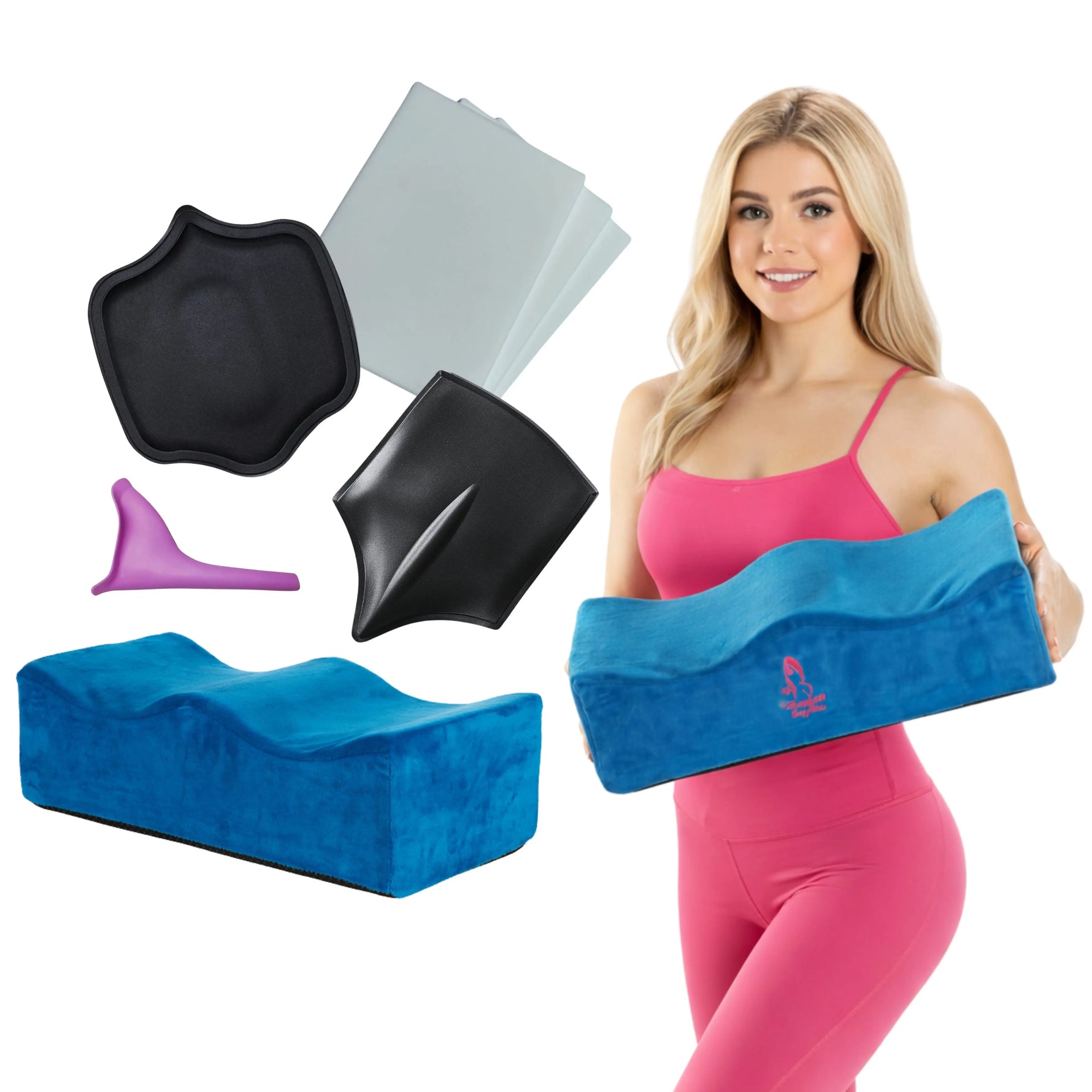 This comprehensive recovery kit includes a patented BBL sitting pillow, abdominal board, lumbar back board, 3-pack lipo foam pads, and female urinal. Together, they provide complete protection for sitting, targeted compression, and convenience throughout your recovery journey.